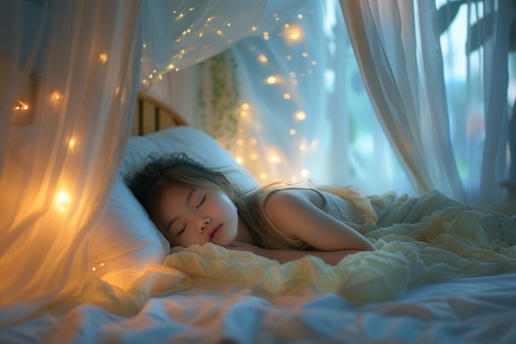 Des histoires au coucher magiques sous un ciel de lit féerique